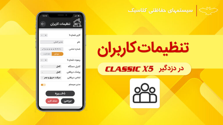 در فیلم آموزشی زیر نحوه کنترل دزدگیر و خروجیها (وسایل برقی) از طریق اپلیکیشن به طور کامل توضیح داده شده است. کاربرانی که دسترسی کنترل دزدگیر و خروجیها را داشته باشند، میتوانند از طریق اپلیکیشن دزدگیر و خروجیها را کنترل کنند. اپلیکیشن Classic X5 دو محیط مختلف برای کاربر عادی و مدیر (ادمین) دارد. برای کاربر عادی محیط اپلیکیشن سادهتر است و منوی تنظیمات مدیر نمایش داده نمیشود. در فیلم زیر استفاده از اپلیکیشن برای کاربر عادی آموزش داده میشود.