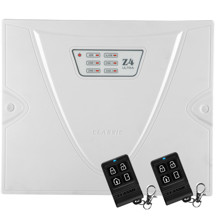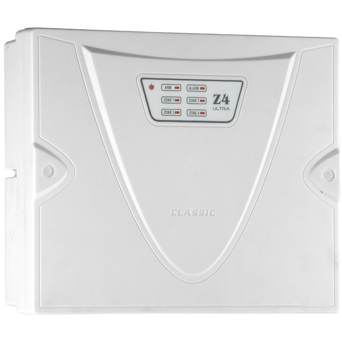 Z4 ULTRA GIGACODE دزدگیر اماکن ۴ زون با سیستم رمز متغیر است. Z4 ULTRA در کنار تلفن کننده G1، یک سیستم حفاظتی مطمئن است که تمامی نیازهای کاربران را در کاربردهای مسکونی، تجاری، اداری، بانکها و جواهرفروشی به خوبی پوشش میدهد. زونهای Z4 ULTRA به وسیله دستگاه Expander Pro تا ۱۲ زون قابل افزایش هستند. این قابلیت Z4 ULTRA را مناسب پاساژها، مجتمعهای مسکونی و غیره میکند.